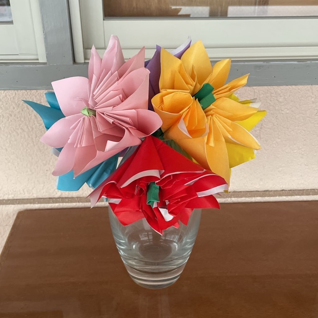 ある日、男の子が「おうちでつくったよ」と折り紙のお花を1輪プレゼントしてくれたんです🌸その姿にみんなも興味津々!