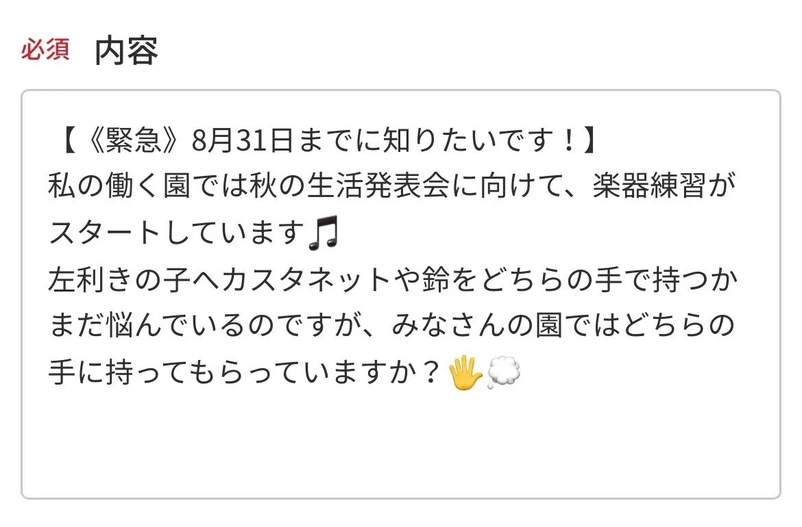 例)《緊急》明日の保育内容に困っています!