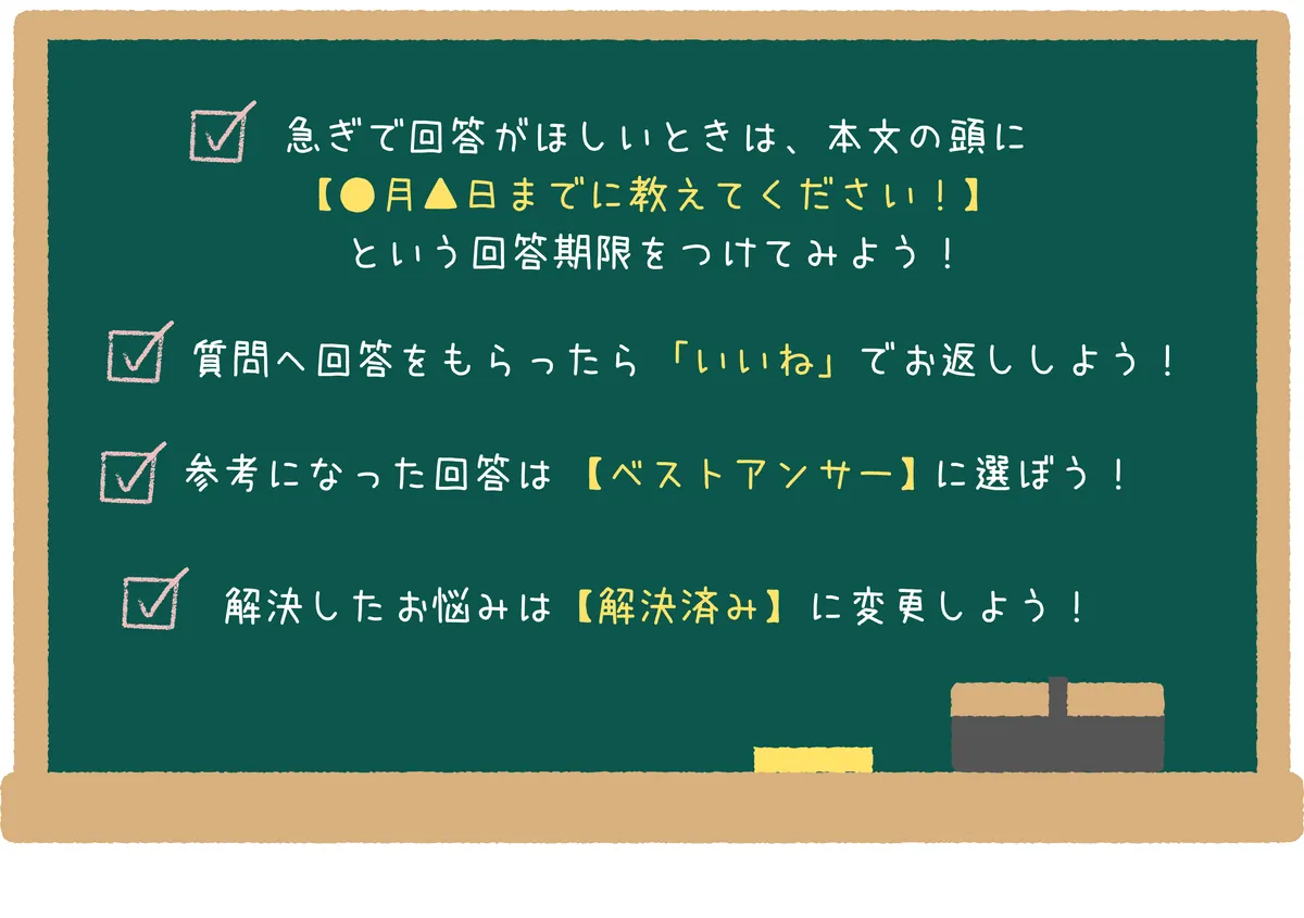 質問に回答をもらった際は、是非「いいね!」でお礼をお返ししてください😊